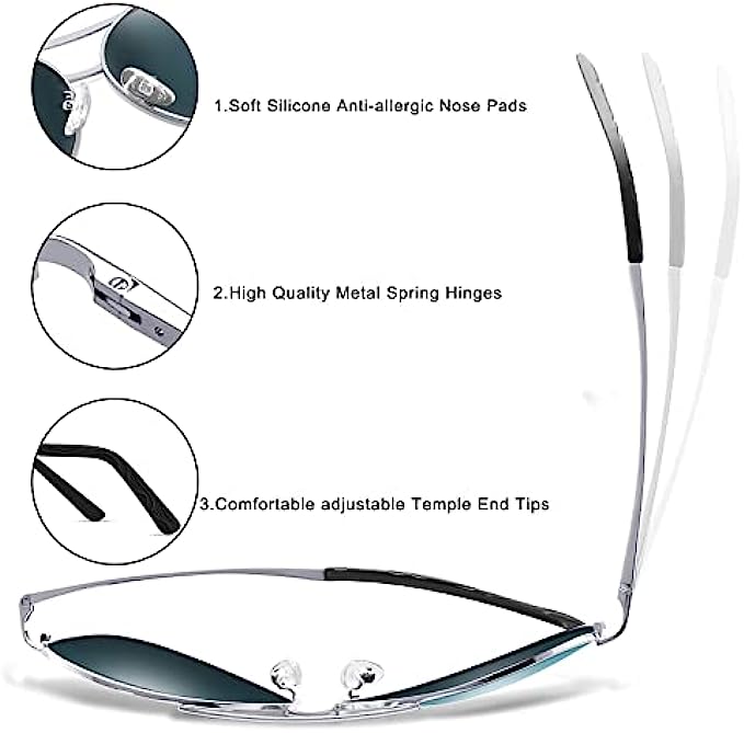 Aviator Sunglasses for Men Women Polarized UV400 Protection Mirrored Lens Metal Frame with Spring Hinges