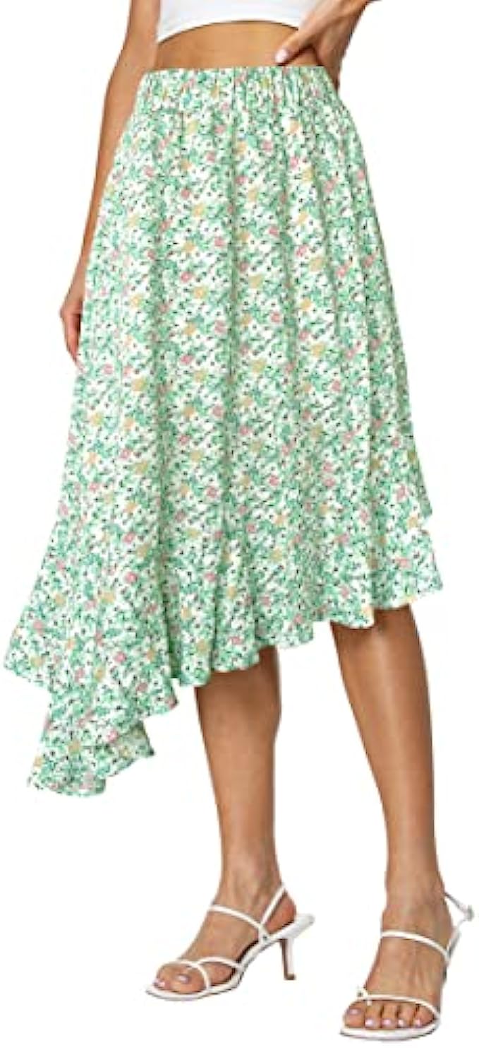 Afibi Women's Boho Floral High Waisted High Low Asymmetric Hem Midi Long Skirt