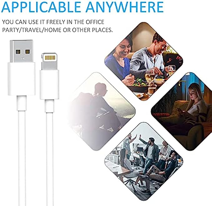• 【Applicable Apple Equipment】Broad Compatibility: iPhone charger cable with wall plug Replacement for iPhone 12 / 12 Mini / 12 Pro / 12 Pro Max 11 XS / XS MAX / XR / X, Phone 8 / 8 Plus, Phone 7 / 7 Plus, Phone 6 / 6 Plus / 6S Plus/ 6S, Phone SE / 5S / 5C / 5, Pad / Air / Pro / Mini and More.